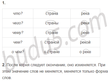 2. Выделите корни. Какая часть слова следует после корня? Изменяется ли она? Можно ли сказать, что изменяется форма слов, а значение слов не меняется?