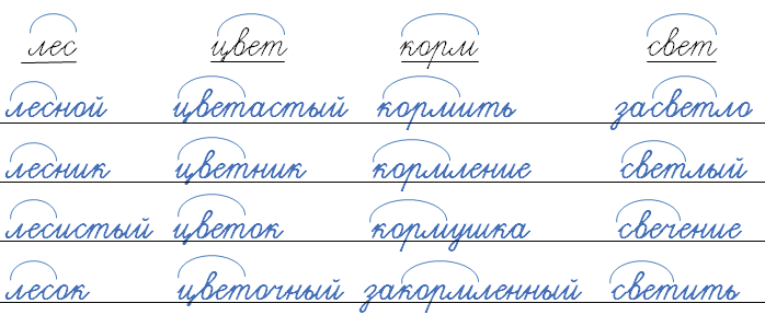 Образовывай однокоренные слова с помощью приставок и суффиксов.
