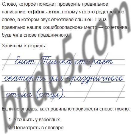 Нина нашла в слове праздничного «ошибкоопасное» место — сочетание букв чн. Согласишься ли ты с Ниной?