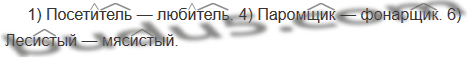 1) Посетитель — любитель. 2) Мечтатель — постель. 3) Чайник — возник. 4) Паромщик — фонарщик. 5) Пильщик — ящик. 6) Лесистый — мясистый. 7) Собачонка — тонко.