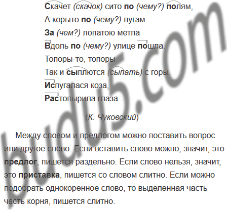 Где приставка, где предлог, где часть корня? Перепишите, раскрывая скобки и устно объясняя написание.