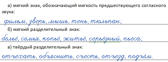 а) мягкий знак, обозначающий мягкость предшествующего согласного звука: