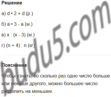 г) В первой сумке n кг огурцов, а во второй - на 4 кг больше. Во сколько раз в первой сумке меньше огурцов, чем во второй?