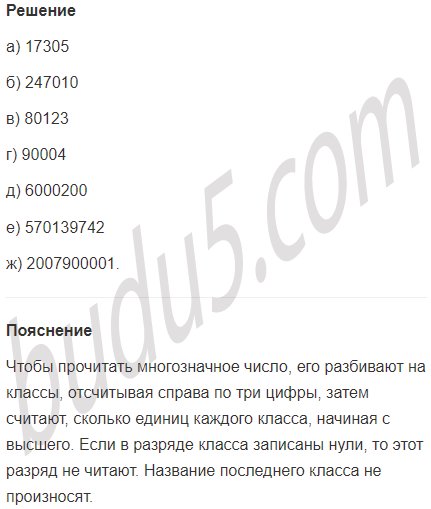 Задание № 6. Запиши цифрами числа: а) семнадцать тысяч триста пять; б) двести сорок семь тысяч десять; в) восемьдесят тысяч сто двадцать три; г) девяносто тысяч четыре; д) шесть миллионов двести; е) пятьсот семьдесят миллионов сто тридцать девять тысяч семьсот сорок два; ж) два миллиарда семь миллионов девятьсот тысяч один.
