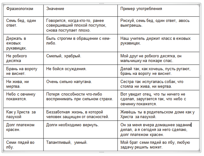 Кто больше? Выпишите из текста повести А. Пушкина "Капитанская дочка" фразеологизмы. Заполните данную ниже таблицу.