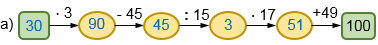 Чтобы определить первое число в цепочке рассуждения начинаем с конца цепочки, двигаясь справа налево и выполняя действия обратные данным в цепочке.