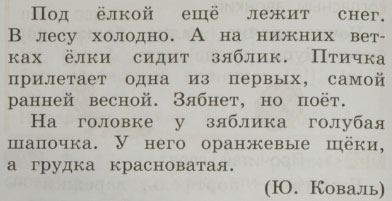 2. Расскажи, как выглядит зяблик. В какой части текста дано описание его внешнего вида?