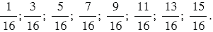 То есть получаем, что правильные дроби, знаменатель которых равен 16, а числитель и знаменатель - взаимно простые числа - это: