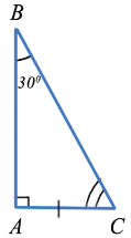 | 30. Если катет прямоугольного треугольника равен половине гипотенузы, то угол, лежащий против этого катета, равен 300 |